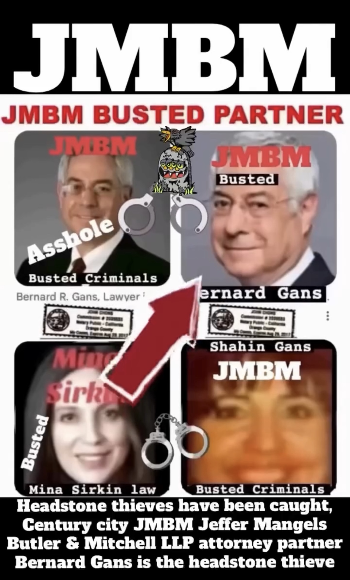 Century City Police 90067 Department JMBM attorney Jeffer Mangels Butler & Mitchel LLP JMBM attorney thief you have 24 hours to place the headstone or we are going to Century City Police department to report your crimes.